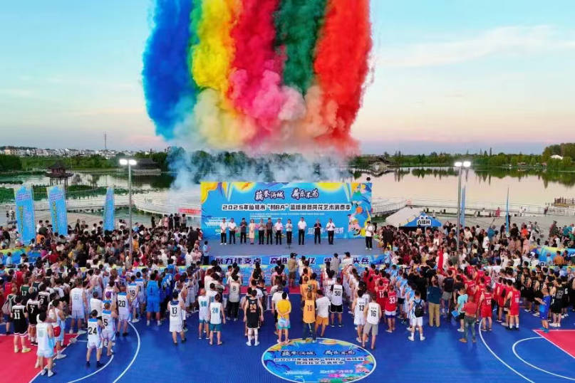 2025年8月11日,仙桃市沔乡归族镇举行铸牢中华平易近族合伙体认识“村BA”篮球赛。